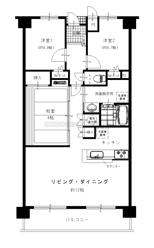 3LDK(72.82m²)└ LDK15帖 和室5帖 洋室4.8帖 洋室4.7帖