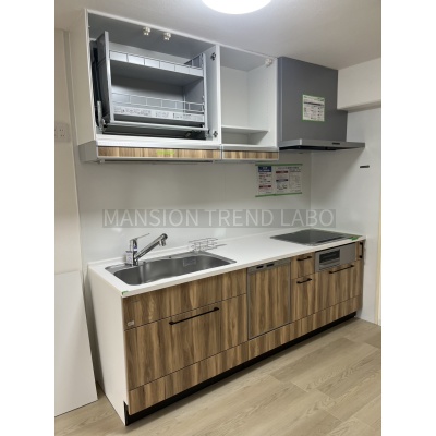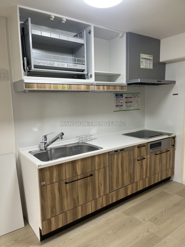 新調したIHクッキングヒータータイプ・昇降式収納・ビルトイン食洗機付のシステムキッチン!