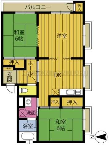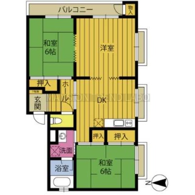 3DK(56.14m²)└ DK 洋室 和室6帖 和室6帖
