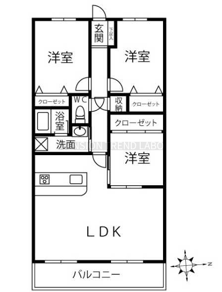3LDK(76.14m²)└ LDK 洋室 洋室 洋室