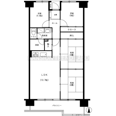 4DK(74.2m²)└ DK13.7帖 和室6帖 和室6帖 洋室5帖 洋室4.5帖