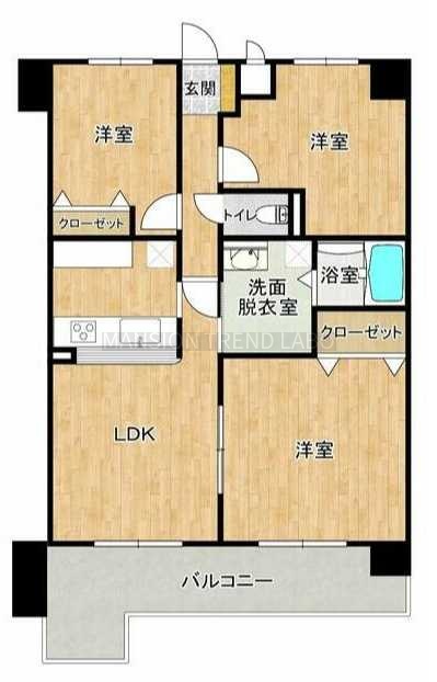 3LDK(69.12m²)└ LDK 洋室 洋室 洋室8帖