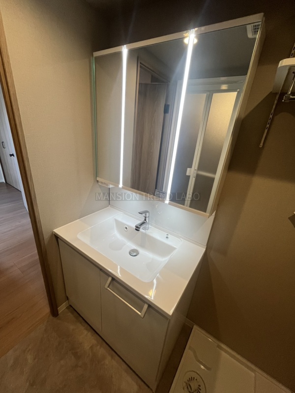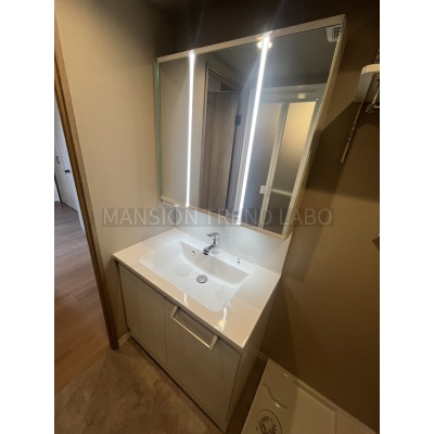 新調した3面鏡内部収納タイプの洗面化粧台!