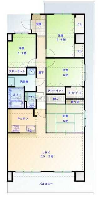 4SLDK(100.44m²)└ LDK20.2帖 洋室6.8帖 洋室6帖 洋室5.2帖 和室6帖