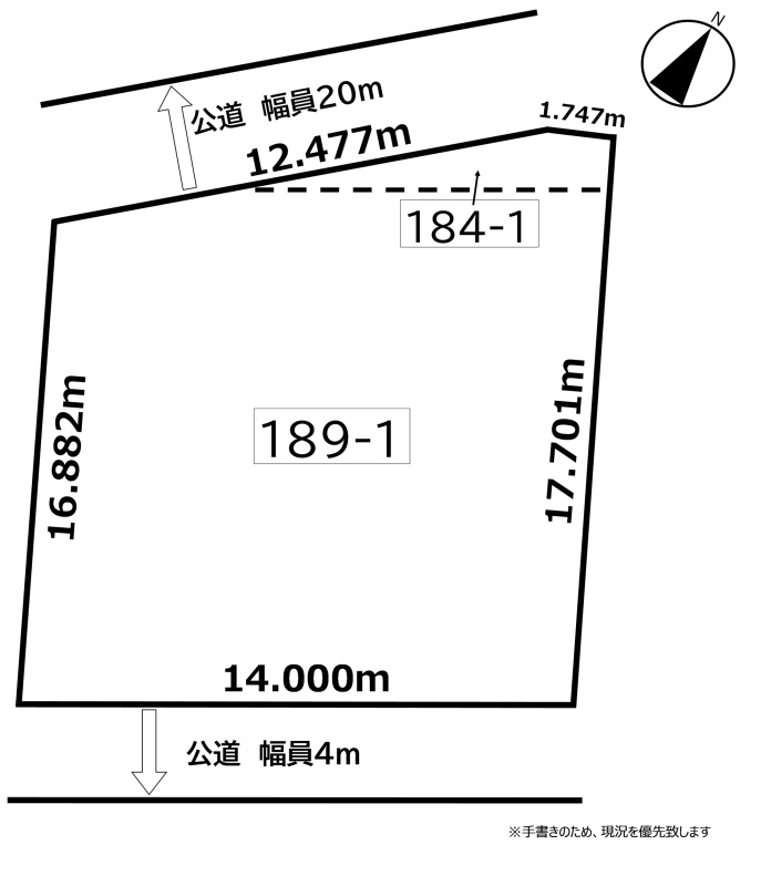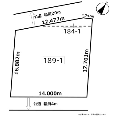 総区画数2区画/全2区画 接道状況 二方(除角地) - 北西側幅20.00mの公道に14.20m接道