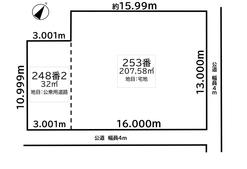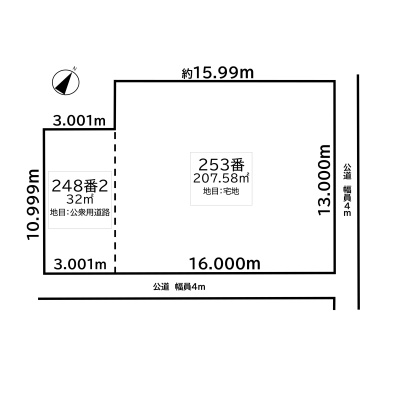 総区画数-/- 接道状況 角地 - 北東側幅4.00mの公道に13.00m接道