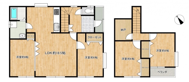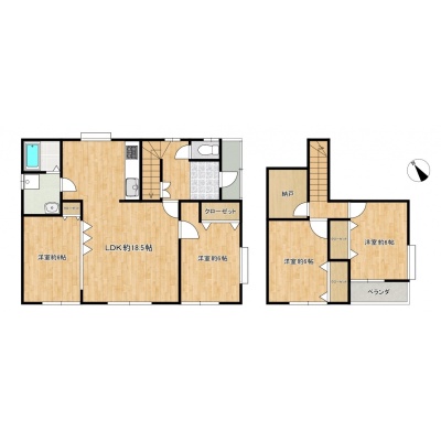 | 間取り | 4SLDK1階:LDK18.5帖 洋室6帖 洋室6帖 / 2階:洋室6帖 洋室6帖 |