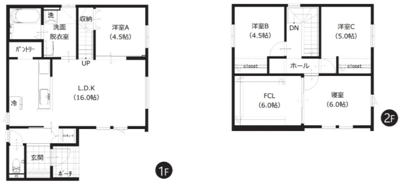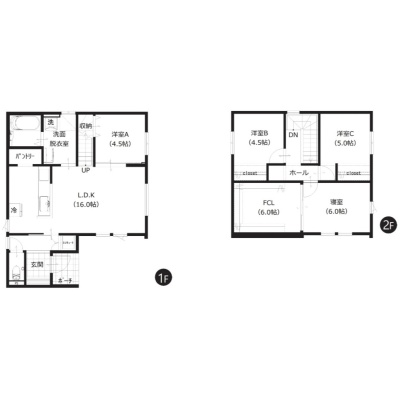 | 間取り | 4LDK1階:LDK16帖 洋室4.5帖 / 2階:洋室4.5帖 洋室5帖 洋室6帖 |