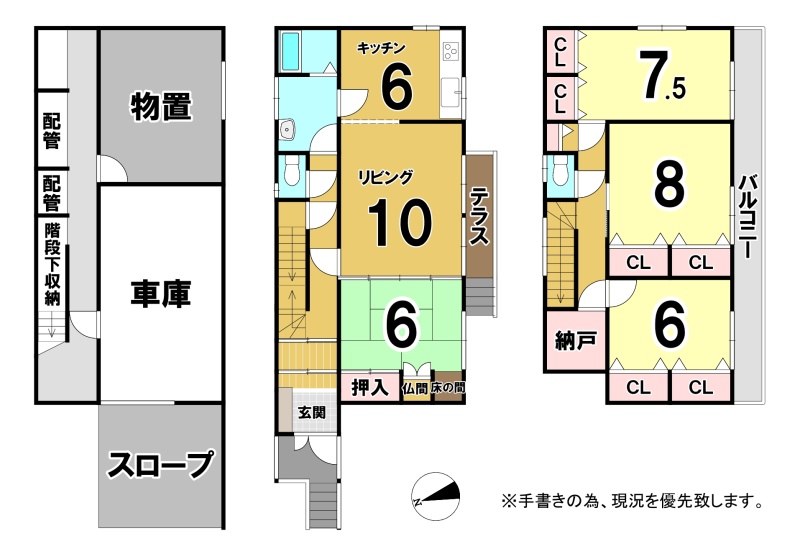| 間取り | 4SLDK1階:LDK16帖 和室6帖 / 2階:洋室6帖 洋室8帖 洋室7.5帖 |