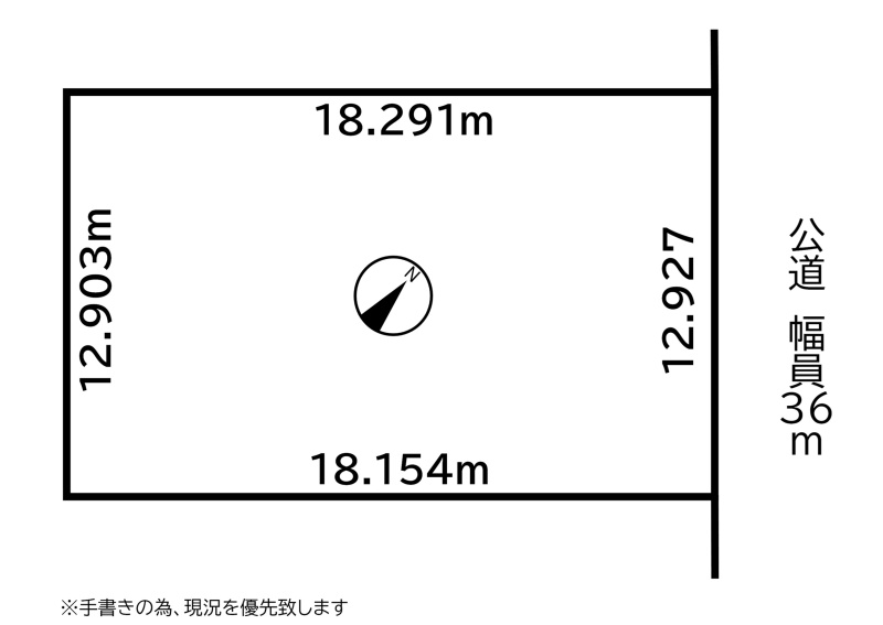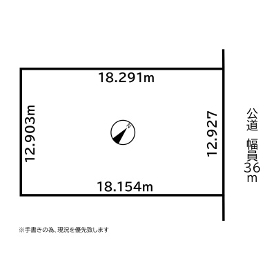 総区画数-/- 接道状況 一方 - 北東側幅36.00mの公道に12.92m接道