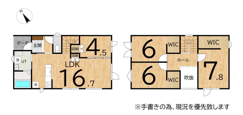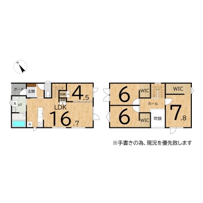 | 間取り | 4LDK1階:LDK16.7帖 洋室4.5帖 / 2階:洋室7.8帖 洋室6帖 洋室6帖 |