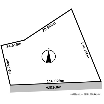 総区画数-/- 接道状況 一方 - 南側幅9.80mの公道に116.02m接道