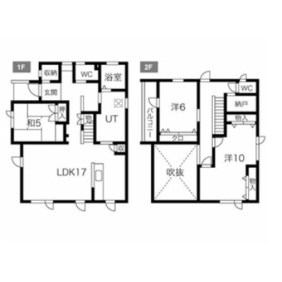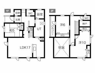 | 間取り | 3LDK1階:LDK17帖 和室5帖 / 2階:洋室6帖 洋室10帖 |