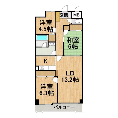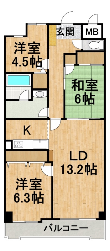 3LDK(75.64m²)└ LDK13.2帖 洋室6.3帖 和室6帖 洋室4.5帖