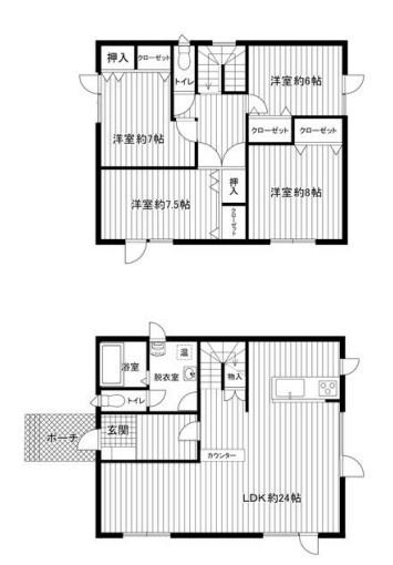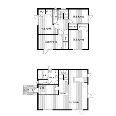 | 間取り | 4LDK2階:洋室8帖 洋室7.5帖 洋室7帖 / その他:LDK24帖 |