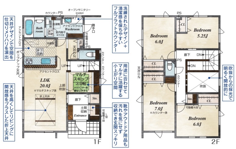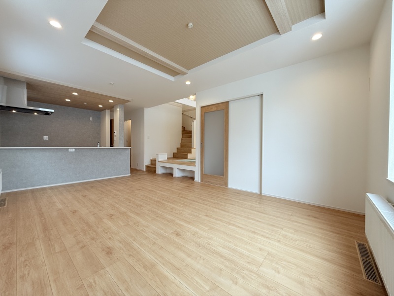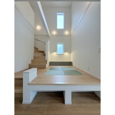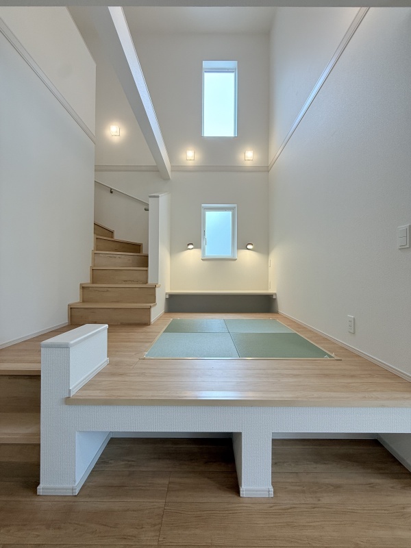 ここに注目!お洒落なモダン畳の小上がりや開放的な吹き抜けのあるリビング♪食洗器付きのキッチンや、ボウル一体型の洗面カウンターなど使い勝手もしっかり!収納豊富でお部屋もすっきり保てます!