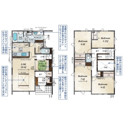 間取り 4LDK1階:LDK20帖 / 2階:洋室7帖 洋室6帖 洋室6帖 洋室5.25帖