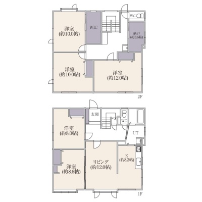 | 間取り | 5LDK1階:LDK20.2帖 その他8帖 洋室8帖 / 2階:洋室12帖 洋室10帖 洋室10帖 |