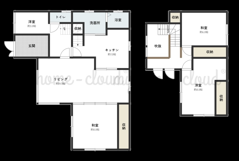 | 間取り | 4LDK1階:LD14.5帖 K7帖 洋室3帖 / 2階:和室6帖 洋室8帖 / その他:和室8帖 |