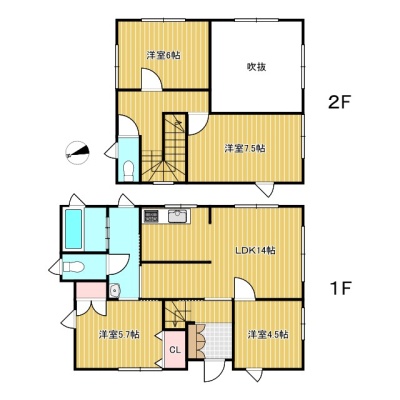 | 間取り | 4LDK1階:LDK14帖 洋室4.5帖 洋室5.7帖 / 2階:洋室6帖 洋室7.5帖 |