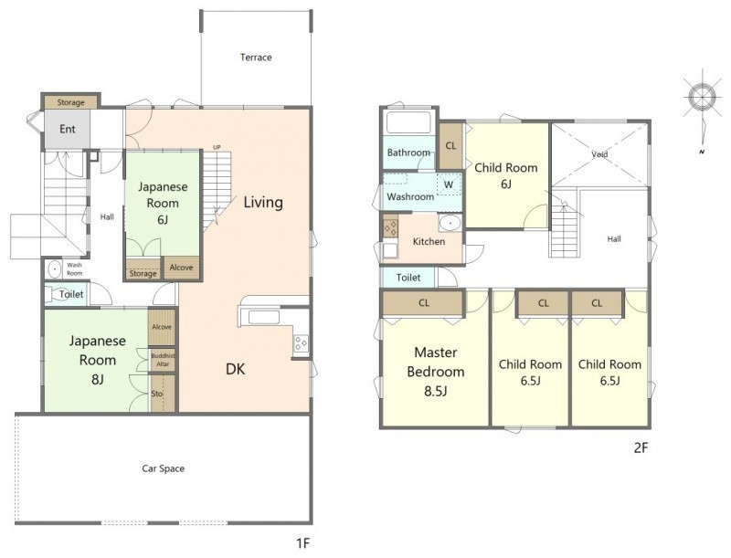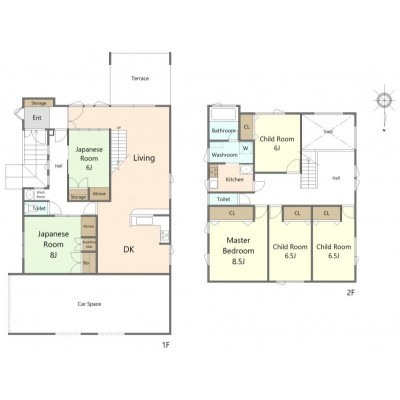| 間取り | 6LDK1階:和室6帖 和室8帖 / 2階:洋室6.5帖 洋室6帖 洋室6.5帖 洋室8.5帖 |