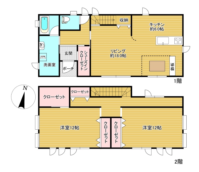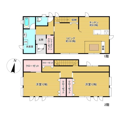 | 間取り | 2LDK1階:LD18帖 K6帖 / 2階:洋室12帖 洋室12帖 |