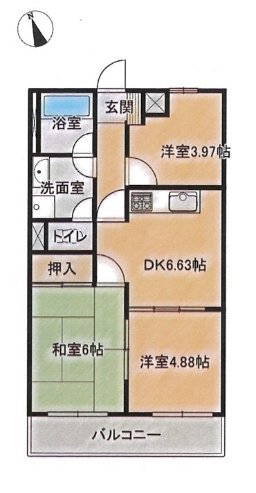 3DK(51.3m²)└ 8階:DK6.6帖 和室6帖 洋室4.8帖 洋室3.9帖