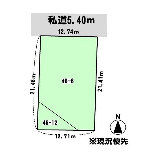 総区画数-/- 接道状況 一方 - 北側幅5.40mの私道に12.74m接道
