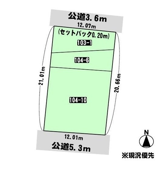総区画数-/- 接道状況 二方(除角地) - 北側幅3.60mの公道に12.07m接道