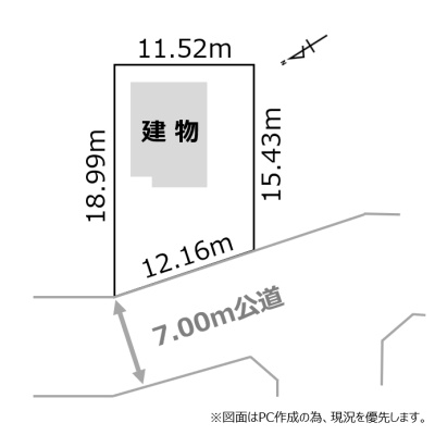 建物の階建 地上2階建 主要採光面 構造 木造 接道状況 一方 - 西側幅7.00mの公道に12.10m接道