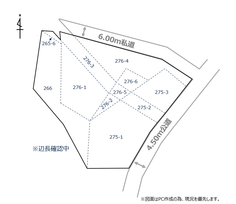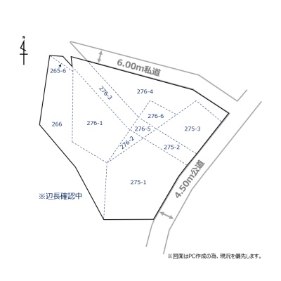 総区画数-/- 接道状況 角地 - 北東側幅6.00mの私道に接道