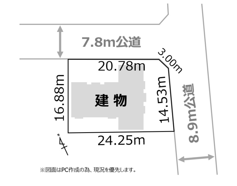 - 南東側幅8.90mの公道に14.53m接道