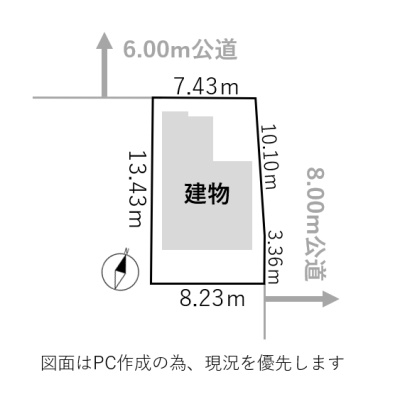 - 北西側幅6.00mの公道に7.43m接道