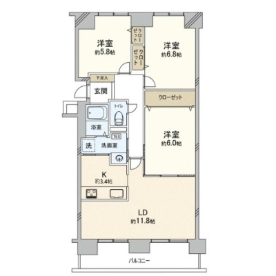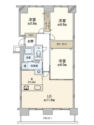 3LDK(74.43m²)└ LDK12.2帖 洋室6帖 洋室6.8帖 洋室5.8帖