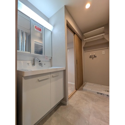 洗面台・洗面所:3面鏡の洗面台なので朝の準備がはかどります◎