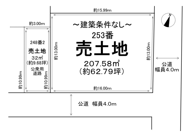 総区画数1区画/全2区画 接道状況 角地 - 北東側幅4.00mの公道に13.00m接道