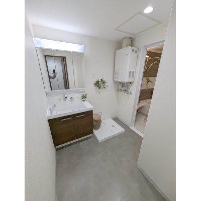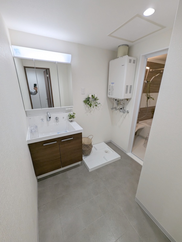 脱衣所、洗面化粧台、洗濯機置場、給湯器