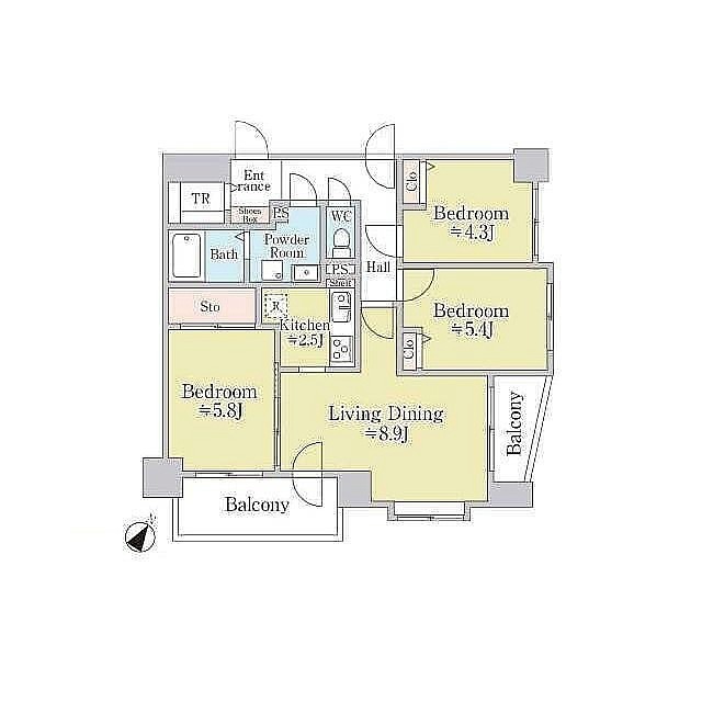 3LDK(67.49m²)└ LDK8.9帖 洋室5.8帖 洋室5.4帖 洋室4.3帖