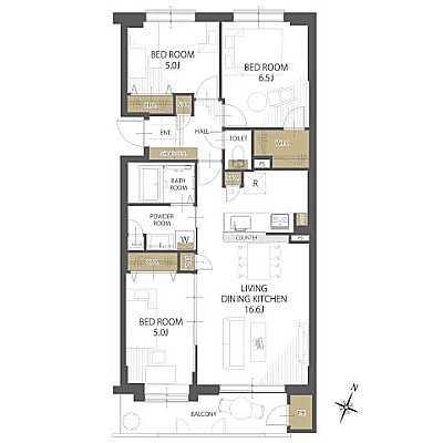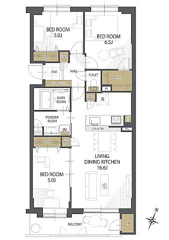 3LDK(72.25m²)└ LDK16.6帖 洋室6.5帖 洋室5帖 洋室5帖