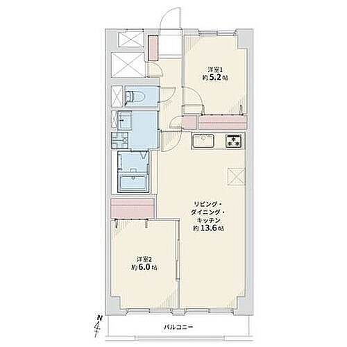 2LDK(60.5m²)└ LDK13.6帖 洋室5.2帖 洋室6帖