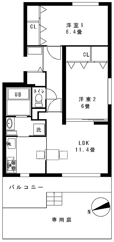 2LDK(56.86m²)└ LDK11.4帖 洋室6.4帖 洋室6帖