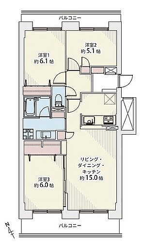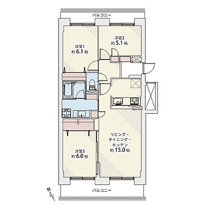 3LDK(70.15m²)└ LDK15帖 洋室6.1帖 洋室5.1帖 洋室6帖