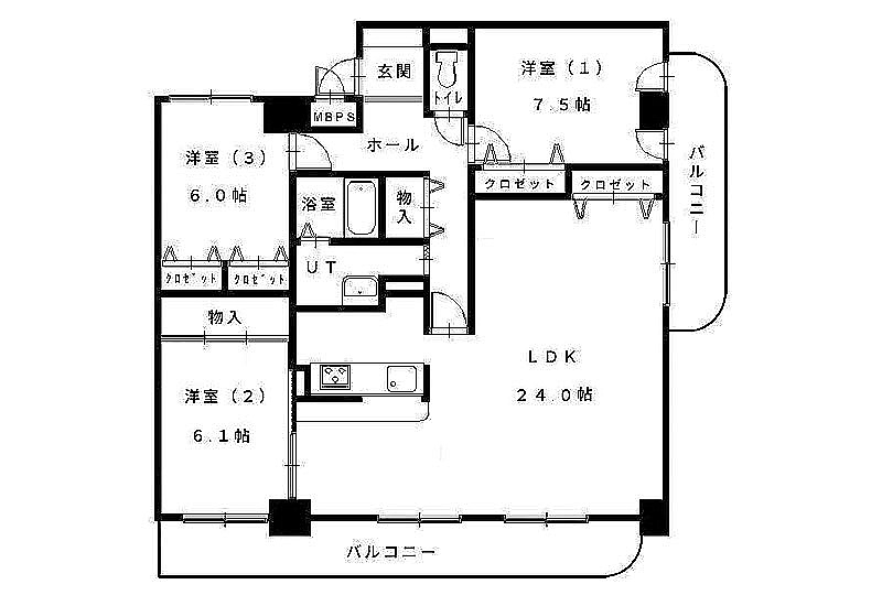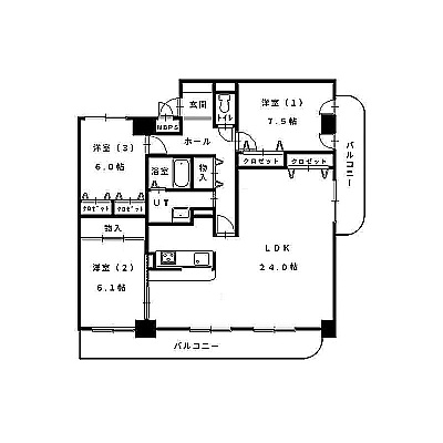 3LDK(96.27m²)└ LDK24帖 洋室7.5帖 洋室6.1帖 洋室6帖