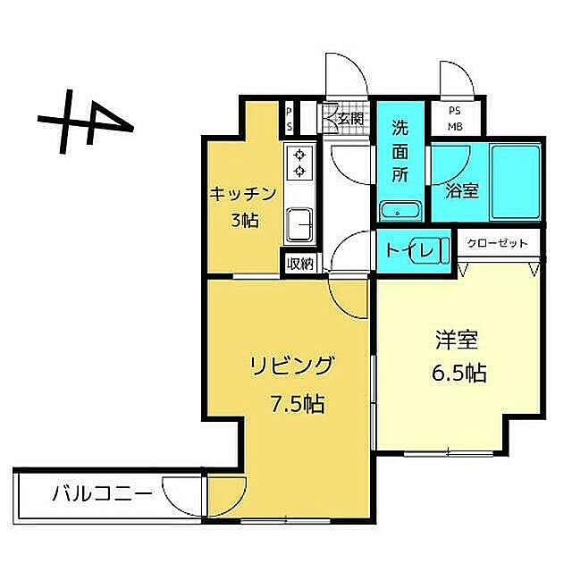 1LDK(40.5m²)└ LD7.5帖 洋室6.5帖 K3帖