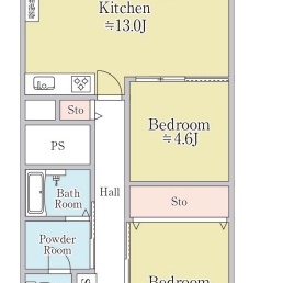 2LDK(61.6m²)└ 7階:LDK13帖 洋室4.6帖 洋室6.1帖