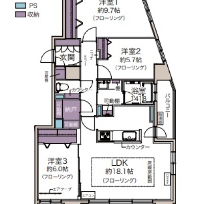 3LDK(92.4m²)└ LDK18.1帖 洋室6帖 洋室5.7帖 洋室9.7帖