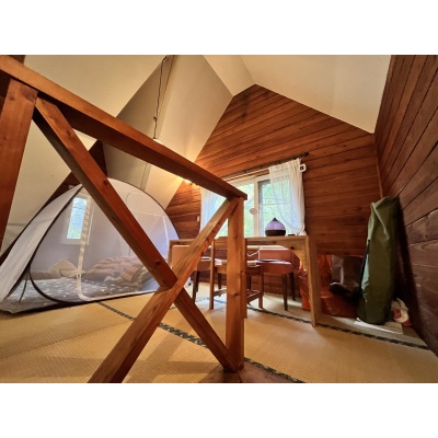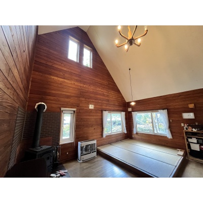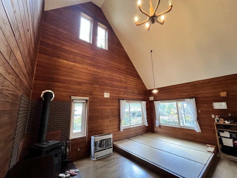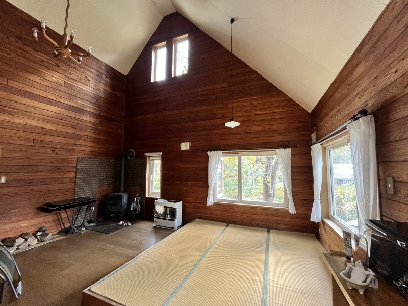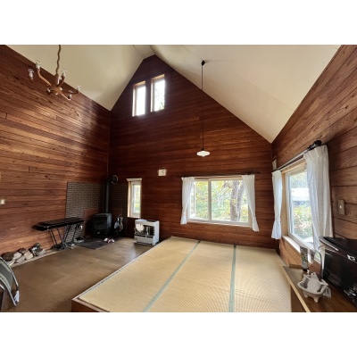 ここに注目!静かで自然に囲まれた緑豊かな生活を余市町で、バーベキューや焚火等、色々な楽しみ方で過ごすことができます。天井クロスに土佐和紙、脱衣所にはカラマツの木材仕様、炭塗料の建具など使用しております。ペチカもあり、非日常生活を楽しめます!!灯油ストーブも併設!!実生活はもちろん、別荘、セカンドハウスとしても最適! 定期的な修繕も行っており、実住居としても生活することが可能です。19帖超のリビングには4.3帖ほどの畳スペースがあります。