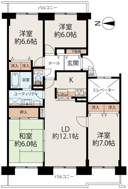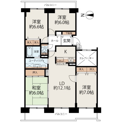 4LDK(86.68m²)└ LDK12.1帖 洋室7帖 洋室6.6帖 洋室6帖 和室6帖