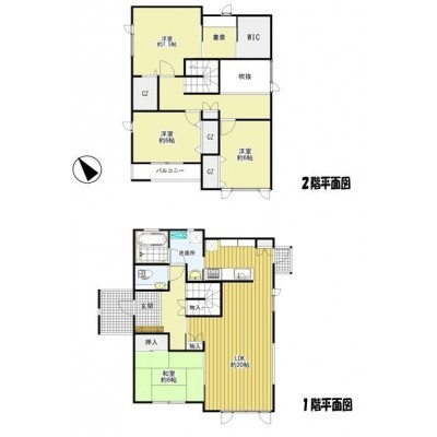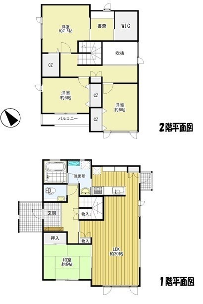 | 間取り | 4LDK1階:LDK20帖 和室6帖 / 2階:洋室7.5帖 洋室6帖 洋室6帖 |