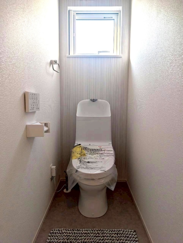 窓があり、明るさと換気を確保できるトイレです。 温水洗浄便座を備え、毎日快適にお使いいただけます。